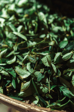 Tea preparation: fresh tea leaves
