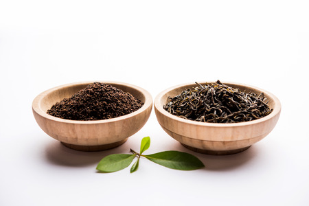 Black Tea Powder or dry dust with or without green leaf and served hot chai in a cup