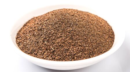 Herbal henna or Mehandi powder in a bowl forming heap, Used for Tattoo or Hair Dye in India