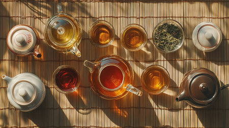 Enjoy a serene Tea Ceremony with an elegant teapot and cup on a bamboo tray, showcasing beauty
