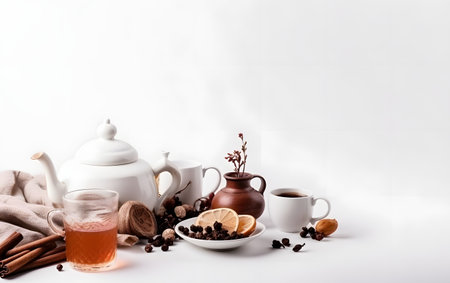 White tea set and tea still life display