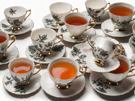 An Elegant Tea Set Display featuring Beautiful Traditional Teacups ready for enjoyment