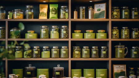 Green Tea Display in Exquisite Light and Selective Focus