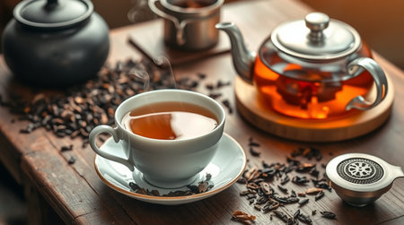 Enjoy a serene tea setup with natural light and botanical accents for a delightful experience