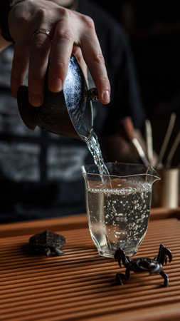 Pouring fragrant tea into a crafted glass cup symbolizes the tradition of the Chinese tea ceremony