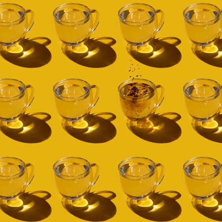 transparent sunshine through glass of water pattern on yellow background.