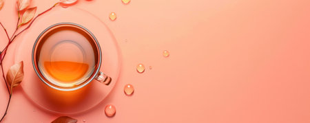 Mockup. Hot tea on a light coral background, providing a lively and vibrant look with space for text or graphics.
