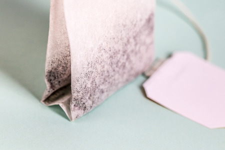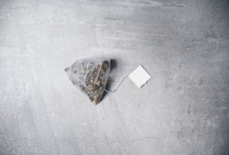 Tea bag on gray background