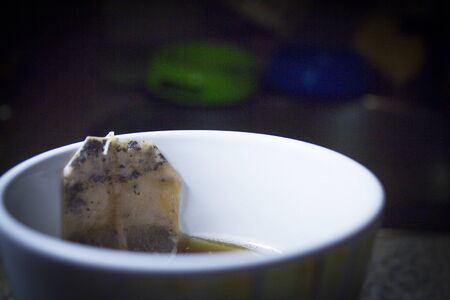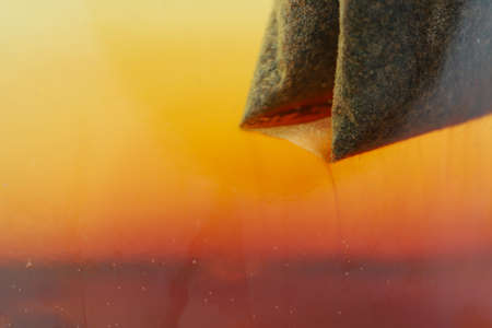 Close-up picture of tea bag in the hot water.