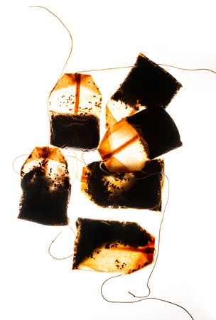 Used tea bags isolated on white background