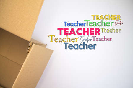 Wooden alphabet blocks spelling out the word Teacher, isolated on white background. High quality photo