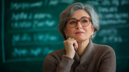 Portrait of a thoughtful mature woman teacher in a classroom environment