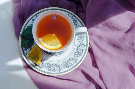 Tea with lemon for Breakfast in the morning. A hot drink on the