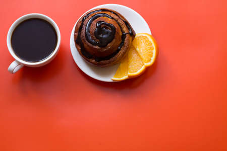 Swedish. Cinnamon Buns and black coffee cup, orange