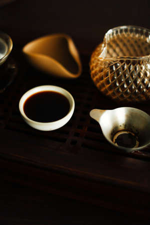 Chinese traditional puerh tea ceremony. Shepherd, chahay and gaiwan