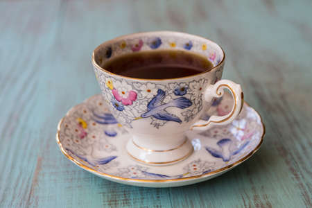 Cup of tea in antique bone china teacup