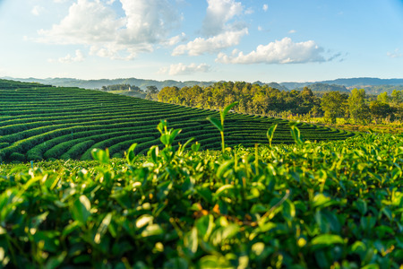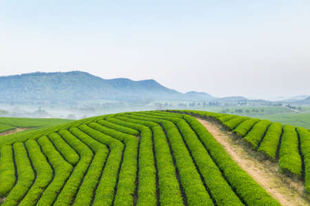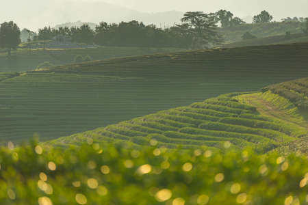 Terrace Green Tea plantation landscape at morning, Chiang mai, Thailand