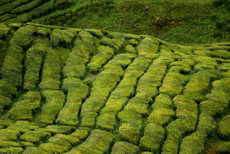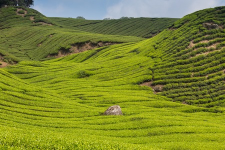 Tea crops, among the hills of Cameron Highlands, green landscapes modified by the hand of man in the area of Tanah Rata, Malaysia