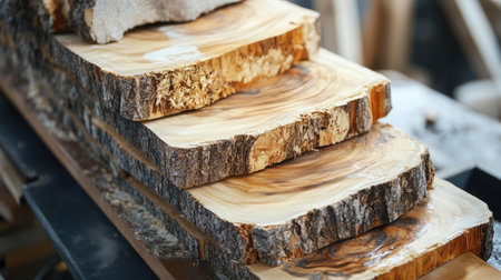 Close-up of sawn wood stacks, with end grains showing natural growth rings and textures.