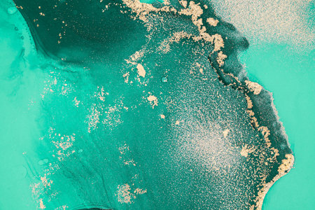 art photography of abstract marbleized effect background. turquoise, emerald green, blue and gold creative colors. Beautiful paint. banner