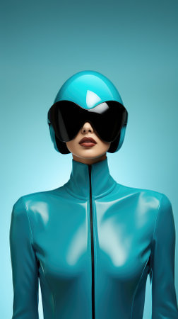 3d rendering of a woman in a futuristic costume on a blue background