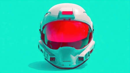 Futuristic astronaut helmet against a teal background