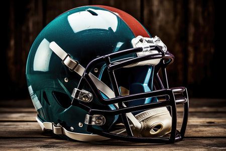 Super Bowl. American football, a football player's protective helmet, created using Generative AI technology.
