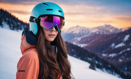 a woman wearing ski goggles and a jacket. ai generative.