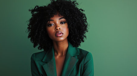 Glamorous Black Woman Dressed in Green for Fashion Magazine Shoot