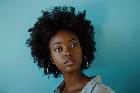 African American 20-30 Woman Isolated On A Turquoise Background With Copy Space. Generative AI