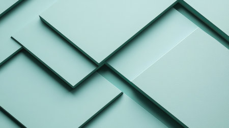 A minimalist and abstract interior space is depicted, rendered in a calming shade of teal. The scene smooth, curved surfaces that create a sense of fluidity and modern The walls and floor blend seamlessly, with subtle shifts in light and shadow defining the architectural forms. The overall aesthetic is clean, serene, and contemporary, offering a tranquil and uncluttered visual experience. This abstract composition is backgrounds or as a representation of modern aesthetics.
