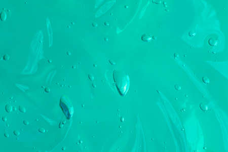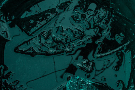 Abstract paint background. Defocused teal color liquid fluid gradient flowing spreading covering chaotically glitter surface