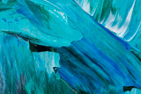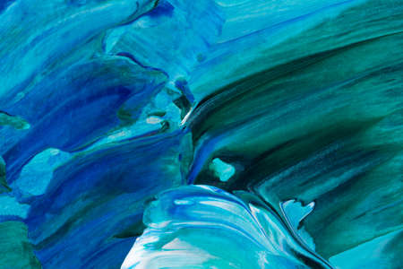 Abstract ocean art background. Summer marine design with acrylic paints. Natural blue-turquoise wave texture. Impressionism in painting. Marine etude. Mixed blue and green colors. Contemporary Art