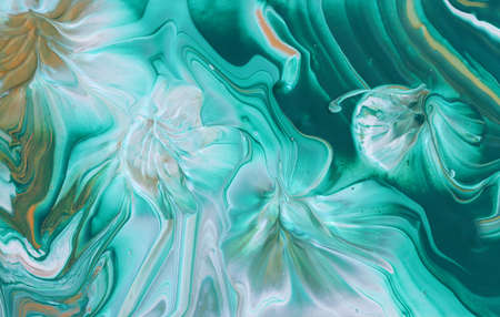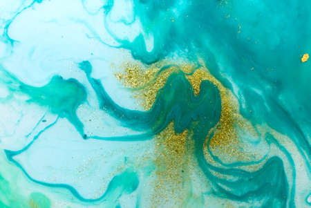 art photography of abstract marbleized effect background. turquoise, emerald green, blue and gold creative colors. Beautiful paint.