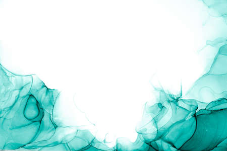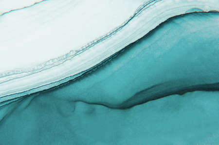 Turquoise Ocean Water. Abstract Luxury Marble Texture. Watercolor Ocean Waves. Hand Painted Alcohol Inks Trendy Sea Paint. Ocean Abstract. Green Liquid Pattern. Blue Art Background. on Paper.