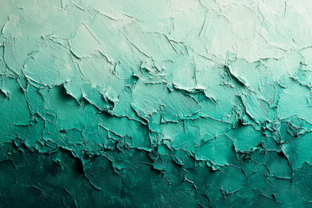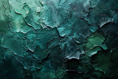abstract surface with pieces of painting in dark turquoise and cyan hues. the thick impasto texture creates a visually captivating aerial view, enhanced by contrasting shadows. the lively seascapes and monochromatic compositions are achieved through focus stacking, resulting in a mesmerizing artwork. ai generated