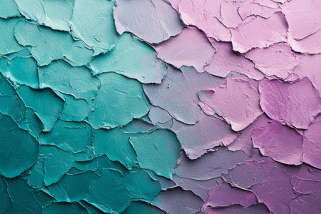 Close-up of layered textured paint in teal, lavender, and purple shades, showcasing an abstract and artistic gradient effect.