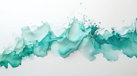 A vibrant watercolor splash in shades of mint and teal dominates the canvas, creating a striking contrast with the surrounding white space. This abstract design invites creativity.