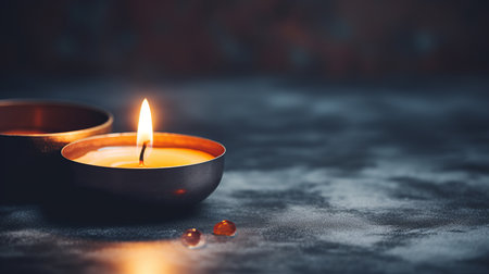 A tranquil candlelight scene featuring a flickering flame in a glass holder, creating a warm and serene ambiance perfect for relaxation and reflection.