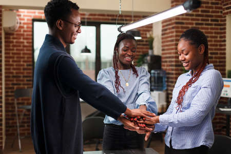 Hands of happy group of African people which stay together in circle happy