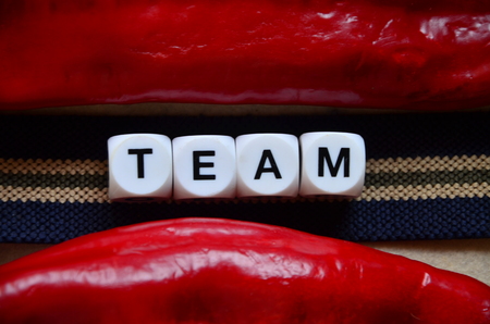 Word TEAM written on the wood cubes on white background. The concept photo with letters #team