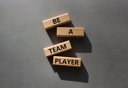 Be a team player symbol. Concept words Be a team player on wooden blocks. Beautiful gray background. Business and Be a team player concept. Copy space