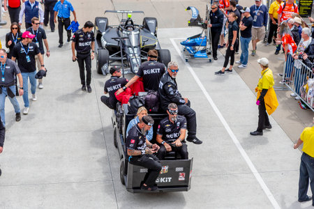 Crew members of Arrow McLaren Chevrolet prepare their race car for the Sukup INDYCAR Race Weekend in NEWTON, IA, USA.