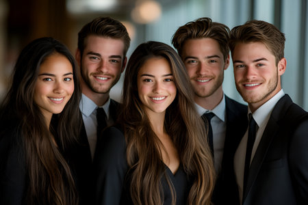 Professional team of young adults in formal attire for corporate event, Employee Appreciation Day.