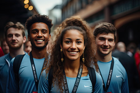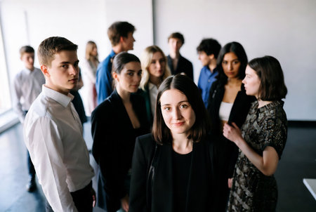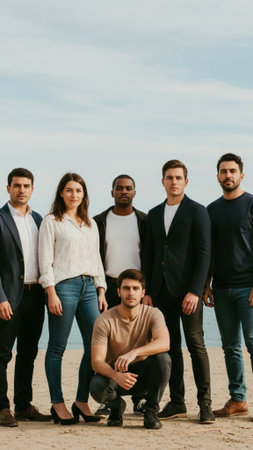 A captivating image showcasing a group of diverse young adults standing together, representing a mix of different ethnic backgrounds, emphasizing unity and modern diversity.