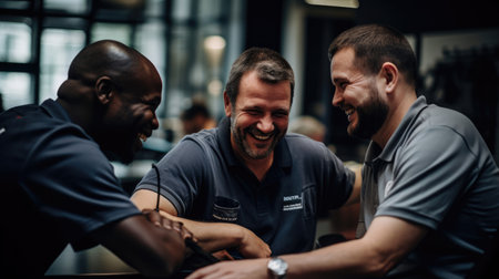 Smiling multi-age colleagues enjoying a moment in a workplace