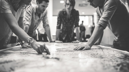 Team Teamwork Brainstorming Planning Strategy Meeting Concept. Black and White