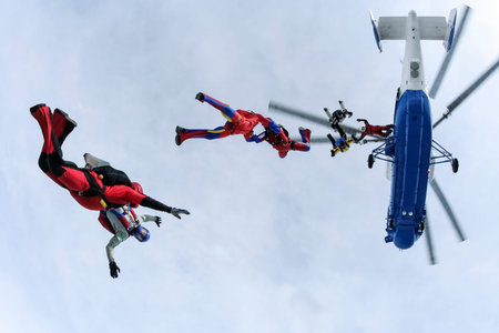 Group of skydivers in free style