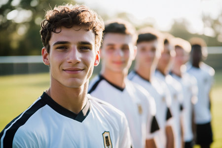 Women's sports team stands confidently on the field, united in teamwork and determination