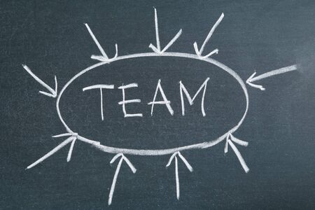 Team written in colorful chalk on blackboard